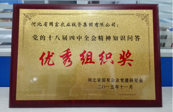 國(guó)富投資集團(tuán)黨委積極響應(yīng)省國(guó)資委號(hào)召,認(rèn)真組織全集團(tuán)黨員參加中國(guó)共產(chǎn)黨十八屆四中全會(huì)精神知識(shí)答題活動(dòng)。我集團(tuán)榮獲省國(guó)資委黨建研究會(huì)頒發(fā)的“優(yōu)秀組織獎(jiǎng)”榮譽(yù)稱(chēng)號(hào)。其中,章靜同志獲一等獎(jiǎng),王欣同志獲優(yōu)秀獎(jiǎng)。