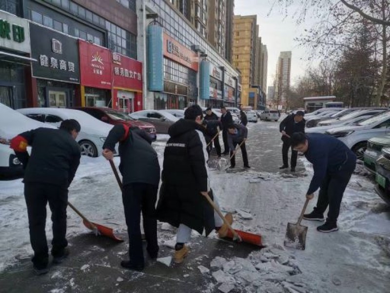路面積雪經(jīng)過行人及車輛的踩碾及降溫結(jié)冰變得又厚又硬,給清掃工作帶來了極大困難,但集團公司的黨員志愿者們不畏艱苦,干勁十足?;顒又?,大家分工明確、相互配合,利用鐵鍬、雪鏟等工具,有條不紊地開展積雪清理活動,重點對停車場主干道、人行通道及自行車存放處進行了集中清理,確保了日常路面暢通和群眾出行安全。