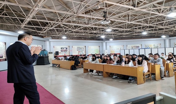 首先,現(xiàn)場以“期貨博弈論”為主題,通過“我們?yōu)槭裁催x擇金融系?我們未來想靠什么生存?我們?yōu)榇诵枰冻瞿男┡??”三個問題與在校學(xué)生開展互動討論,幫助學(xué)生分析當(dāng)前形勢,明確努力方向。湯志江對當(dāng)前金融衍生品市場基本情況進行了介紹,講解了期貨市場的功能與優(yōu)勢,并將期貨的零和博弈與生活經(jīng)歷相結(jié)合,幫助學(xué)生理解期貨交易方式與交易心理。對期貨市場套保、套利、投機參與者進行分類介紹,并舉例講解了三者參與期貨市場的目的。強調(diào)了金融服務(wù)中知行合一的重要性,重點講解了期貨如何服務(wù)實體經(jīng)濟。