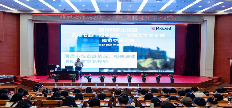 2024年6月5日,恒銀期貨總經(jīng)理湯志江率領(lǐng)團(tuán)隊(duì)在河北地質(zhì)大學(xué)華信學(xué)院報(bào)告廳開(kāi)展了一場(chǎng)別開(kāi)生面的“期貨知識(shí)進(jìn)校園”活動(dòng),并同步舉辦了第七屆“鄭商所杯”全國(guó)大學(xué)生金融模擬交易大賽——河北地質(zhì)大學(xué)華信學(xué)院專場(chǎng)宣講會(huì)。為了預(yù)熱本次活動(dòng),校方在公眾號(hào)發(fā)布了活動(dòng)通告,受到了各系學(xué)生的熱烈追捧,參會(huì)人數(shù)超過(guò)300人。此次活動(dòng)旨在加強(qiáng)期貨知識(shí)在校園的普及與推廣,提升大學(xué)生對(duì)金融市場(chǎng)的認(rèn)識(shí)與理解,同時(shí)也為廣大師生提供了“鄭商所杯”這樣一個(gè)展示才華、交流學(xué)習(xí)的平臺(tái)。