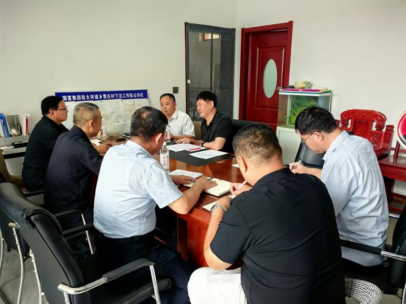 國富公司駐賈莊村工作隊(duì)隊(duì)長齊連洪匯報了下沉工作開展以來的主要工作情況和下一步的打算。大河道鄉(xiāng)黨委書記王貴民介紹了賈莊村的經(jīng)濟(jì)發(fā)展、鄉(xiāng)村建設(shè)規(guī)劃和村容村貌整治等情況,并對國富下沉工作隊(duì)的工作表示高度贊賞。三個工作隊(duì)進(jìn)行了交流學(xué)習(xí)。