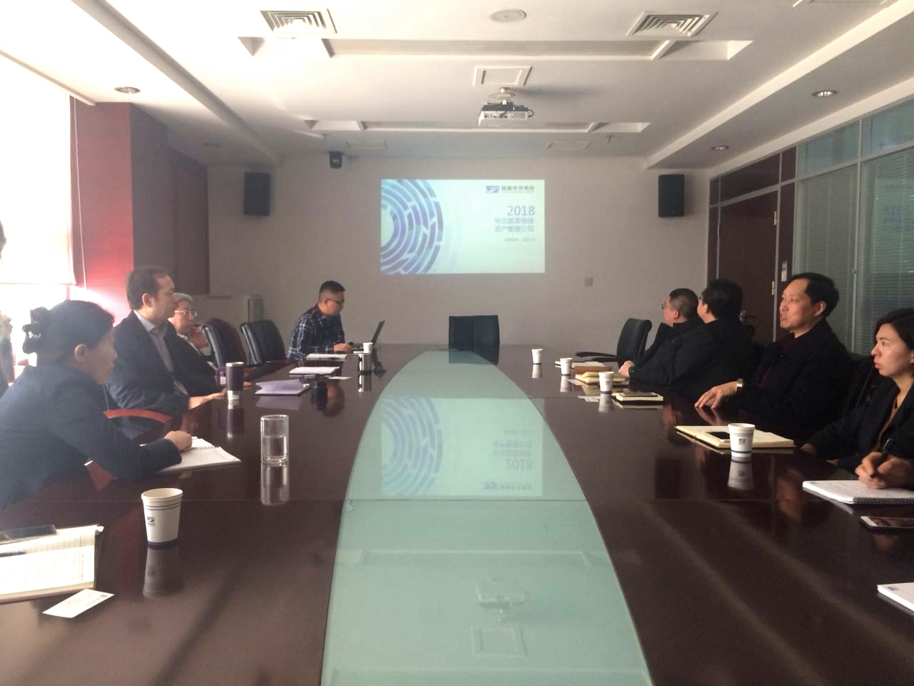 2018年3月14日上午,石家莊股權交易所副總裁孫福彬、總裁助理丁濤一行來到河北省國富農業(yè)投資集團有限公司進行業(yè)務交流。國富投資集團總經(jīng)理張立忠、副總經(jīng)理韓繼普和國富(香港)控股有限公司、國富農業(yè)擔保有限公司、國富股權基金管理有限公司等相關單位負責人參加了座談交流。