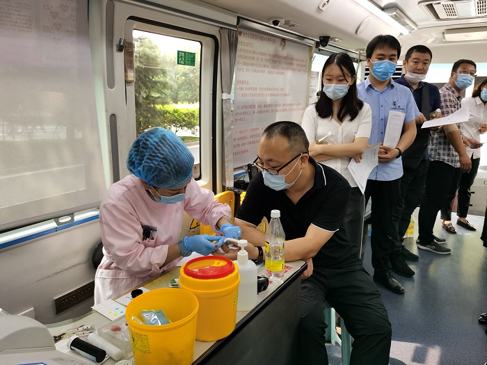 8月13日上午,“河青號”愛心獻(xiàn)血車開進(jìn)了國富投資集團(tuán)總部,雖然烈日炎炎,驕陽似火,卻仍阻擋不住干部職工傳遞愛心的熱情?;顒蝇F(xiàn)場,30余名職工代表在醫(yī)護(hù)人員的引導(dǎo)下,依次填寫登記表、測血壓、抽血化驗(yàn)、采集血樣,整個(gè)過程秩序井然。獻(xiàn)血隊(duì)伍中既有黨員干部,又有普通職工,既有剛剛?cè)肼毜那嗄陠T工,也有工作多年的老同志,他們用同樣的方式表達(dá)著自己的愛心,奉獻(xiàn)著自己的真情。最終共22名符合條件的職工獻(xiàn)血成功,獻(xiàn)血總量達(dá)6800CC,他們用滴滴熱血詮釋了奉獻(xiàn)精神,凝聚了赤誠之力,承載了生命希望,為省會無償獻(xiàn)血事業(yè)再次貢獻(xiàn)力量。