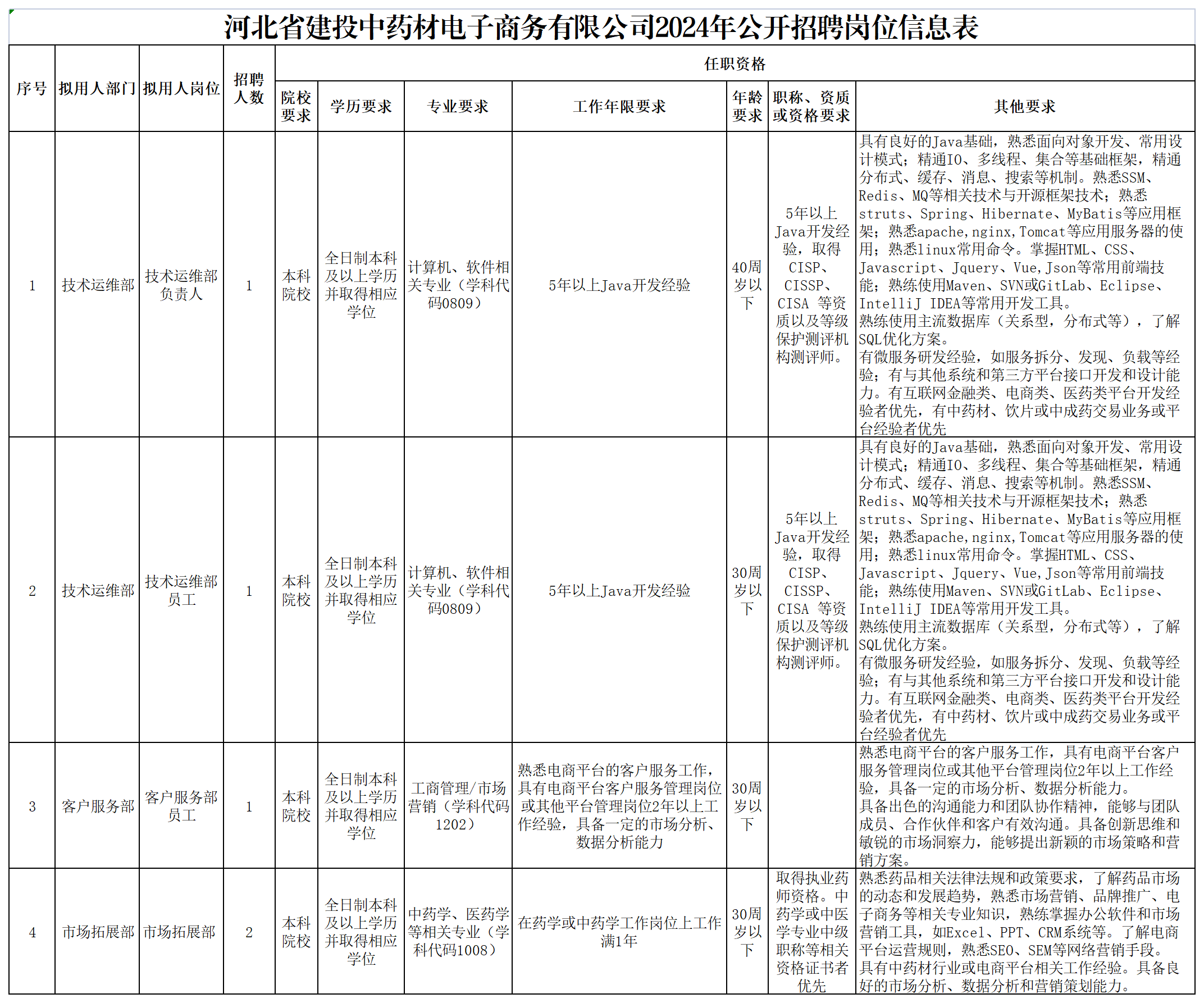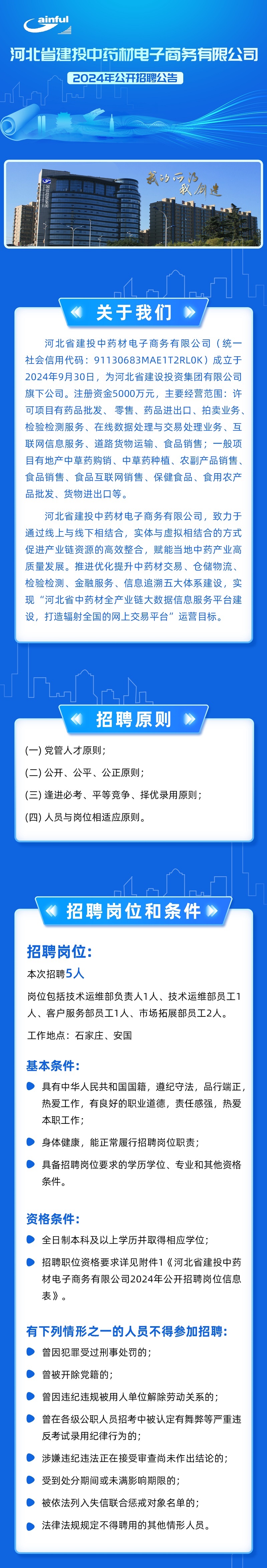 河北省建投中藥材電子商務有限公司2024年公開招聘公告